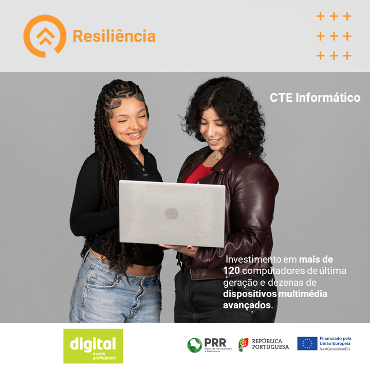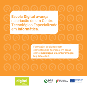 Na Escola Profissional de Tecnologia Digital acreditamos no potencial dos alunos e queremos dar-lhes todas as ferramentas para que possam chegar mais longe. Por isso, estamos a criar o nosso Centro Tecnológico Especializado (CTE) em Informática, um projeto integrado no PRR – Plano de Recuperação e Resiliência, pensado exatamente para preparar os alunos para as profissões do futuro.